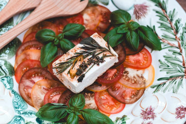 Nun mit frischen Kräutern und Blüten bestreuen und mit Grillvergnügen beträufeln.